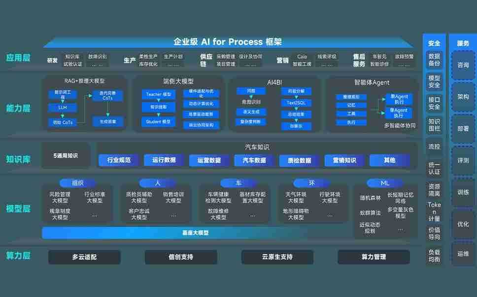 365英国上市公司问学智车解决方案是一套基于AI技术的汽车行业智能化系统,,,,覆盖从底层算力到顶层AI应用的全栈方案。。方案由算力层、、模型层和应用层组成:算力层,,方案支持多种一体机配置,,,具备云端灵活部署、、、、多云适配以及动态优化计算资源的能力;模型层,,,365英国上市公司问学平台版提供了企业级AI应用一站式构建与管理平台,,,,支持基于后训练强化技术的汽车企业专属模型的训练、、、评测和运营;应用层,,365英国上市公司问学DeepSeek版提供包括超级员工、、智能招采、、智能营销、、、智能客服、、、AI for BI等一系列解决方案,,可助力汽车行业实现数字化转型,,,让管理更智能、、响应更敏捷。。